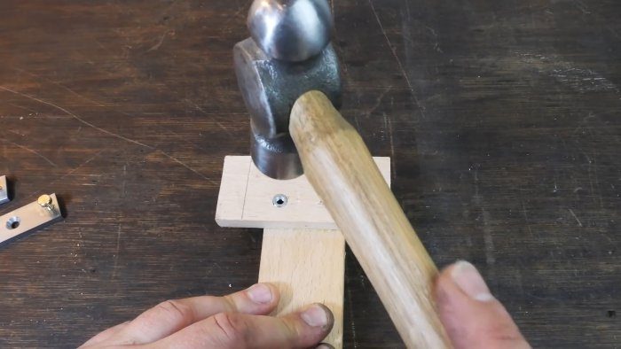 Вставляем в отверстия гайки, подбиваем молотком, вкручиваем винты и, ударяя по головкам винтов, перемещаем гайки вглубь отверстий, после чего винты удаляем.