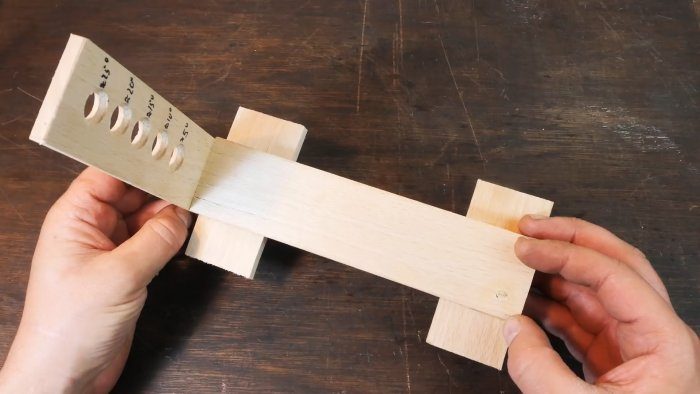 Обрабатываем половину бруса с отверстиями рубанком и рядом с отверстиями указываем углы будущей заточки от 5 до 25 градусов.