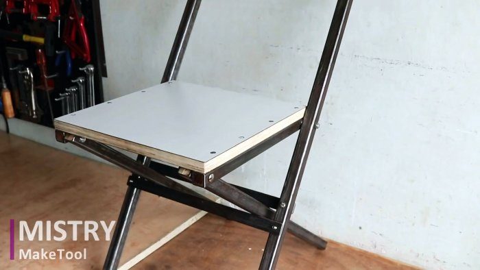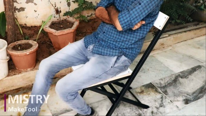 На даче или в придомовой беседке совсем не помешают складные стулья, которые в сложенном положении занимают совсем немного места. Сделать их можно из самых простых и недорогих материалов при наличии начальных столярных и слесарных навыков.