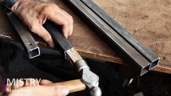 Согласно расчетам, нарезаем из профильной квадратной трубы по две заготовки трех типов длины.