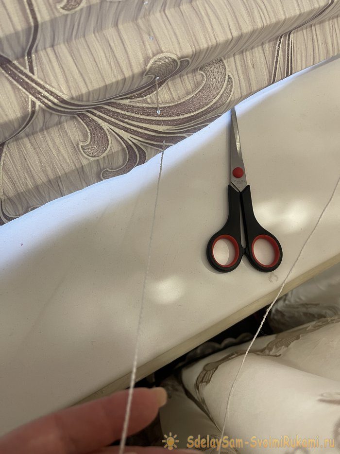 5. Шнурок следует разрезать на 2 или 3 части (зависит от количества просверленных отверстий) длиной равной окну, плюс еще 5 см.