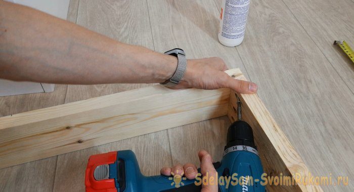 Соединять каркас буду с помощью столярного клея ПВА и шурупами на косой шуруп. Использую самодельный кондуктор.