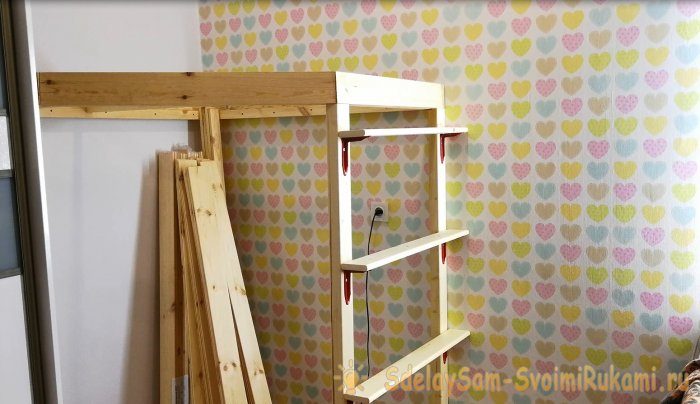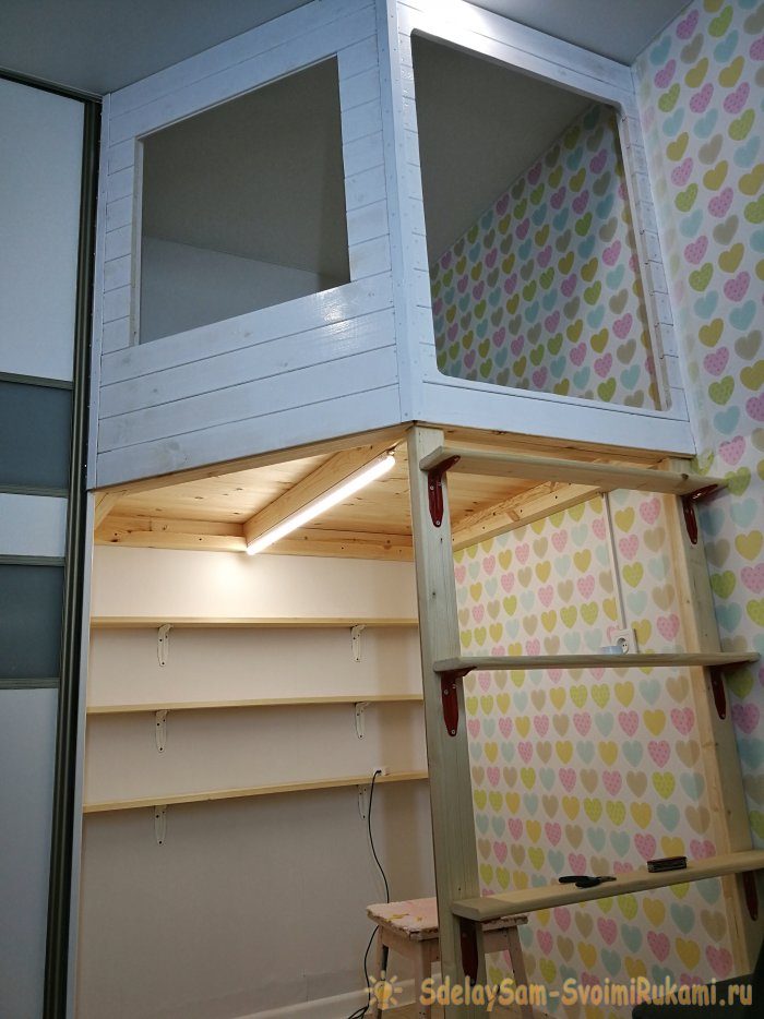 В комнате был угол между шкафом и стеной. В нем складировались игрушки и больше он никак не использовался. Я прикинул, что можно смастерить домик чердак.