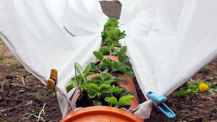Если его не будет, то грунт уплотниться и прикорневой полив работать не сможет. После него засыпается грунт, а также по желанию перлит, перегной или торф. Затем высаживается клубника.