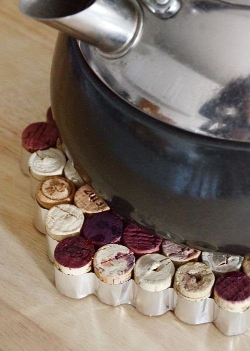 Винные пробки — отличный материал для применения в качестве подставки под горячее, потому что он поглощает тепло. Такой интересный уникальный предмет будет идеально защищать поверхность Вашего стола.