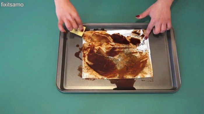 Далее распрямляем и разглаживаем руками на подносе. Берем небольшую емкость, в которую кладем чайную ложку растворимого кофе.