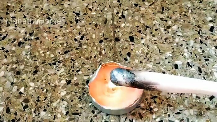 После этого берется зубная щетка, и край ее рукоятки расплавляется над свечой или зажигалкой.