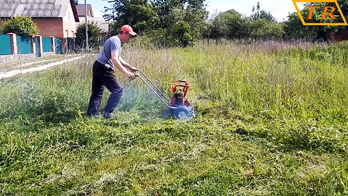 Запускаем мотор и приступаем к работе, для которой была собрана самоделка, – косьбе «дикой» травы.