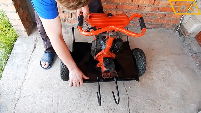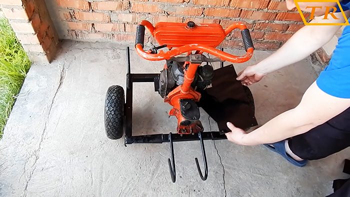 К двум оставшимся сторонам рамы привариваем с одной стороны по бокам «рога», направленные вверх, для монтажа трубчатых ручек, с внутренней – небольшой подрамок с отверстиями для крепления двигателя и агрегатов от бензопилы Урал.