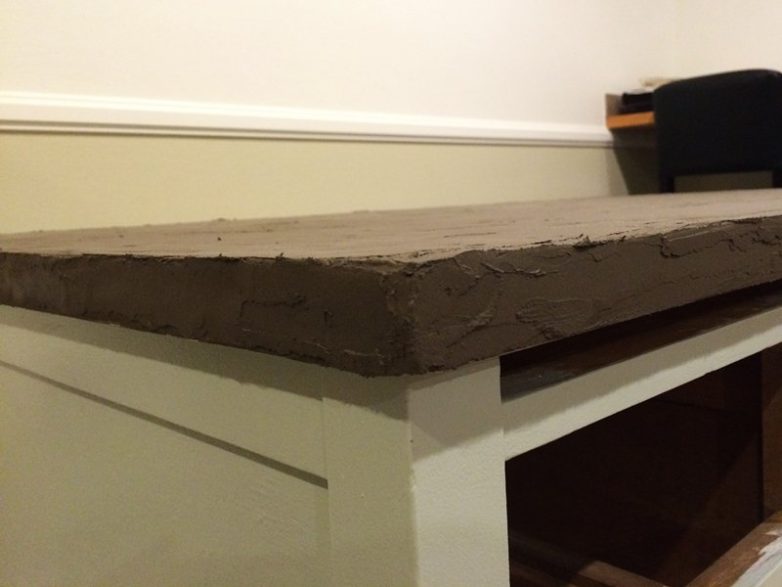 Шаг 4: Начиная с боков Вашего стола, распространяйте бетон тонким, ровным слоем.