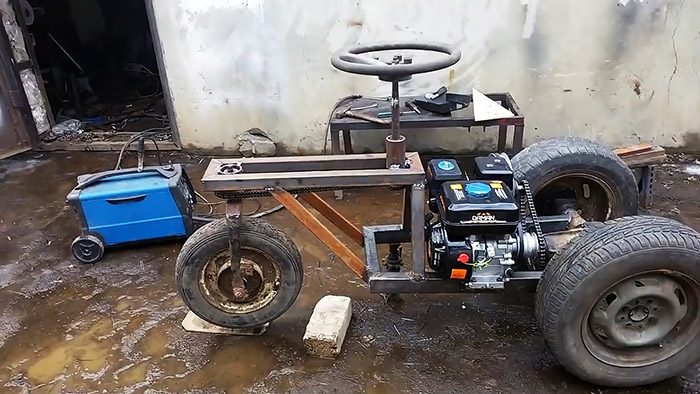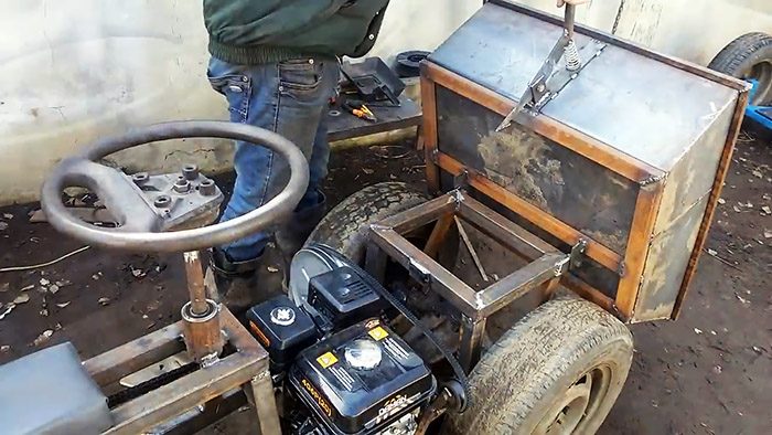 Самодельная бензиновая тачка с простым управлением