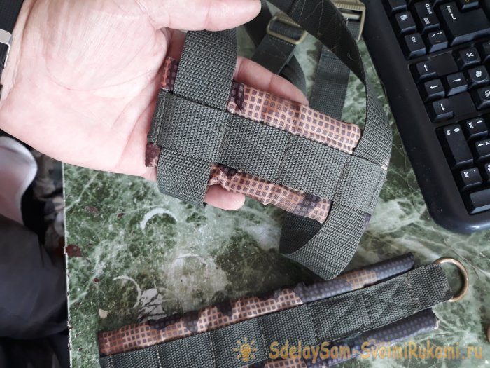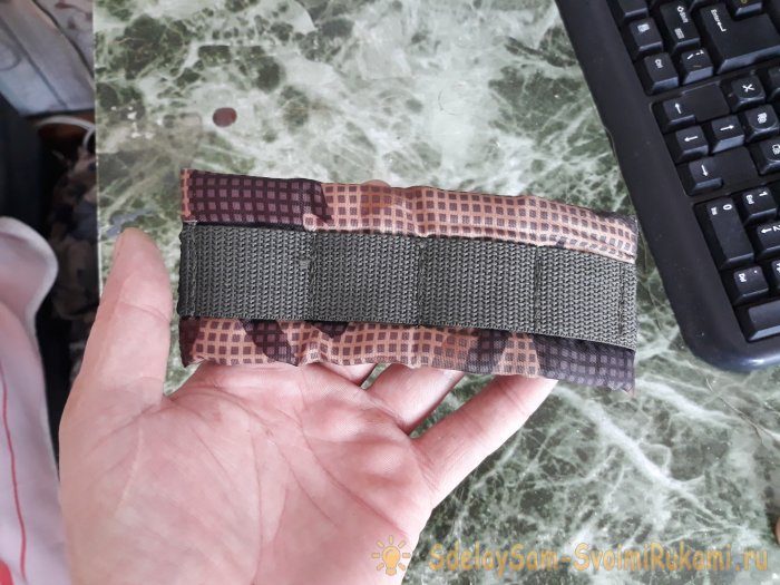Лично я, сначала пришивал вручную, из-за неумения пользоваться швейной машинкой, но потом, всё-таки, изыскал умельца, который мне и прострочил нужные детали. Теперь нам понадобятся поролоновые вставки. На рюкзаке они были в виде полос поролона, обтянутого болоньевой тканью.