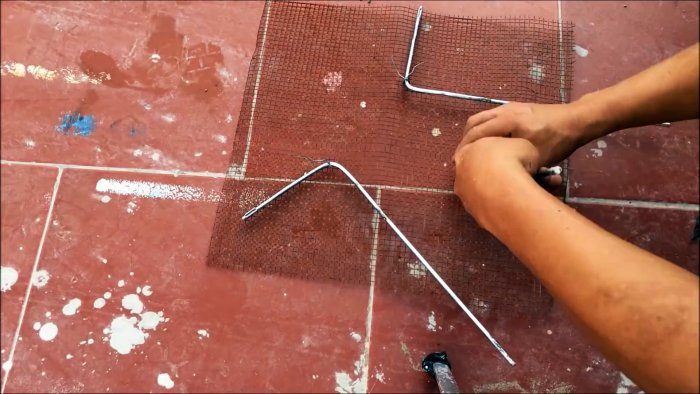 Далее нужно согнуть арматуру буквой «Г», для армирования трубок изнутри. Согнутые пруты привязываются к сеткам, которые будут армировать дно чаш фонтана.