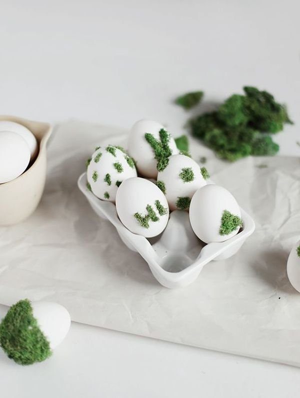 Яйца и мох – прекрасное сочетание для весеннего украшения стола. Несмотря на то, что этот проект может быть слишком сложным для маленьких пальчиков, дети постарше смогут проявить свой творческий потенциал и, сделать интересные композиции используя мох.