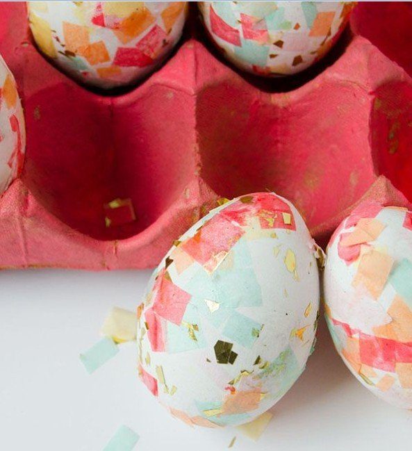 Какой праздник без конфетти? Используйте клей, чтобы сделать необычные пасхальные яйца. Вы будете удивлены, насколько конфетти могут изменить привычное представление о них.
