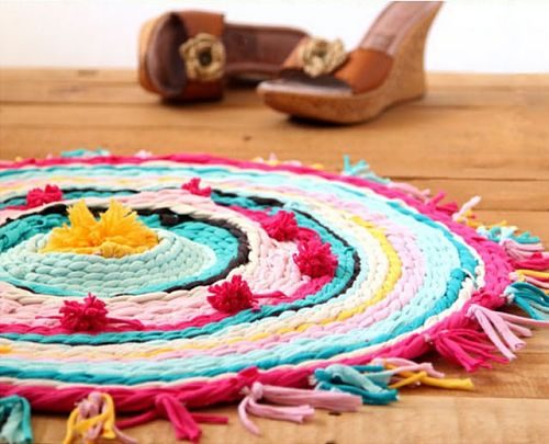 Яркий коврик из футболок