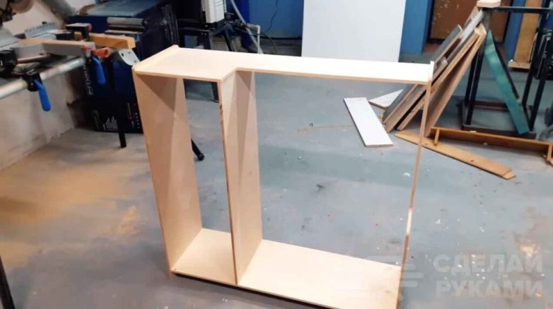 Первым делом из листа фанеры необходимо будет вырезать основные заготовки. Потом из них надо собрать каркас будущей игровой кухни.