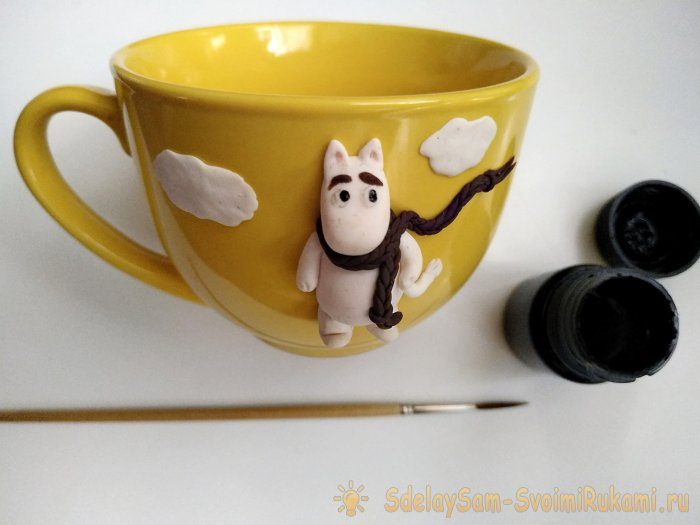 Декор кружки полимерной глиной. Мастер-класс «Муми-тролль в шарфе»