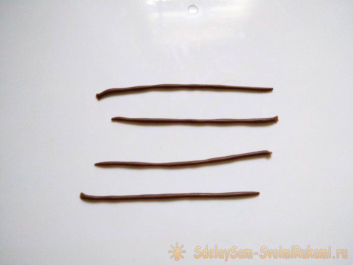Разрежьте на 4 равные части. Раскатайте их по поверхности указательным пальцем на максимально тонкие «ниточки».