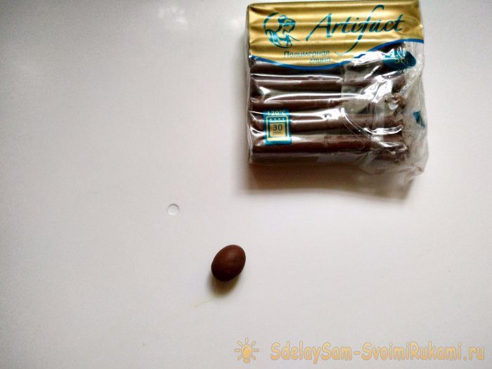 Отрежьте маленький кусок коричневой полимерной глины. Тщательно его разомните.