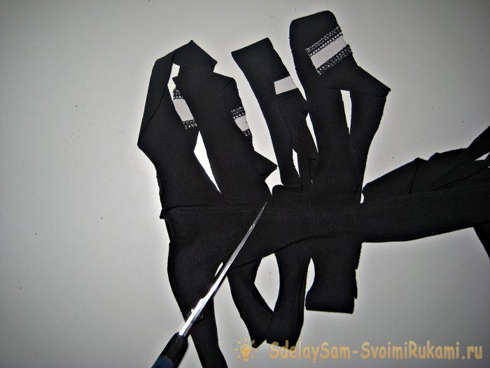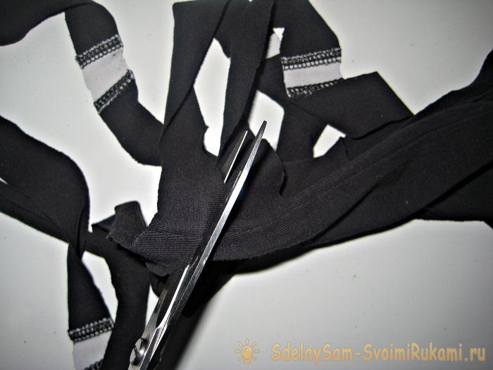 7. Его разрезаем по косой так, чтобы получилась безотрывная нить.