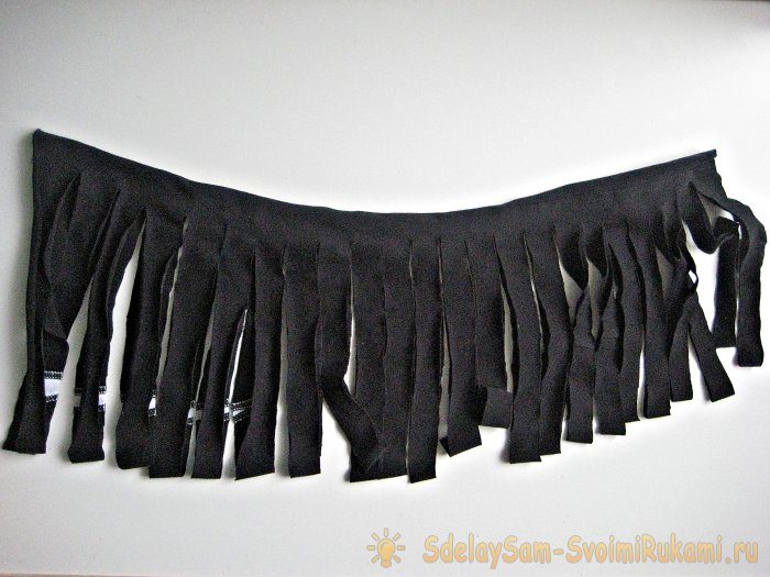 2. Делаем надрезы снизу вверх, не доходя до верхнего края 2 см. Ширина полос должна быть около 1,5-2 см.