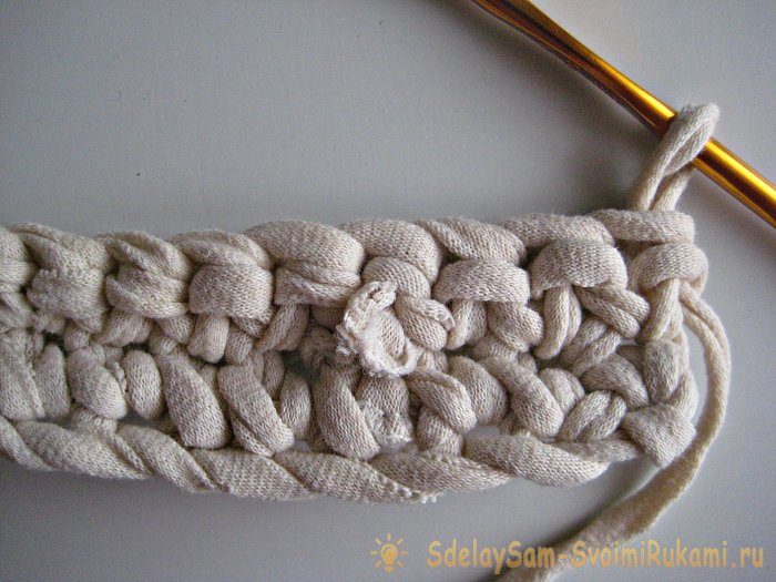 10. Когда основная нить закончиться, пришиваем другую нить и продолжаем вязание.