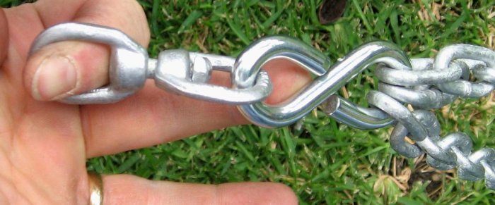Теперь отмеряем основную цепь, тут все зависть от высоты до ветки вашего дерева. Отрезаем необходимую длину.