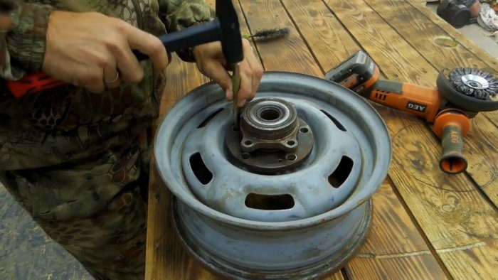 Закрепляем на ступице диск и проверяем легкость вращения в подшипнике ступицы. Если эти две детали от разных машин, отверстия могут не совпадать. Тогда, используя ступицу как шаблон, нужно наметить, а затем просверлить дрелью новые отверстия в диске.
