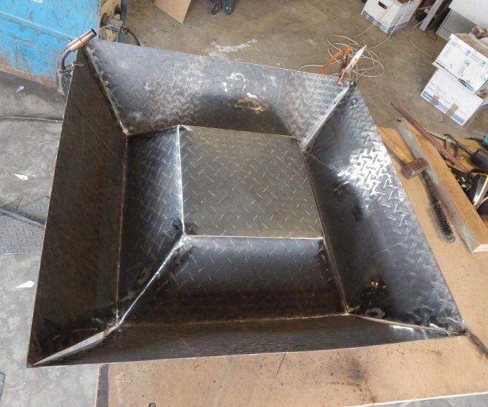 Далее нужно сварить оставшиеся углы согнутой чаши. Поскольку в местах сгиба металла остается напряжения, то варить нужно очень тщательно. В конце шов шлифуется от окалины.