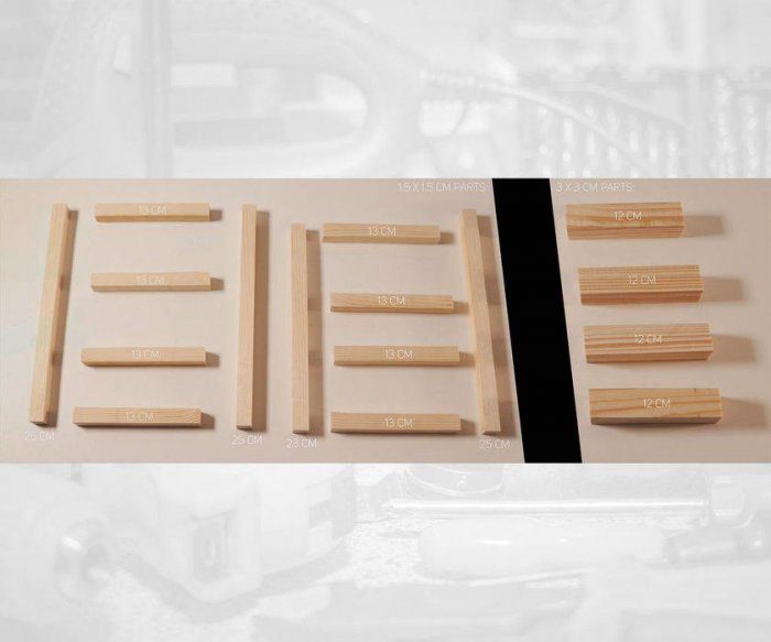 Итак, нужно из деревянных реек аккуратно напились следующие отрезки: