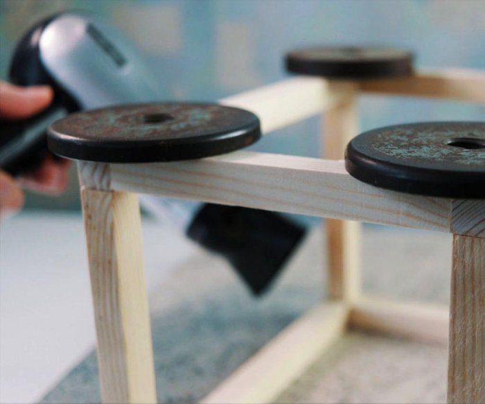 Склеиваем два отрезка длиной 25 см с двумя отрезками длиной 13 см. Держите конструкцию в течение 3-5 минут, пока клей надежно не схватит части. Для ускорения можно используя фен.