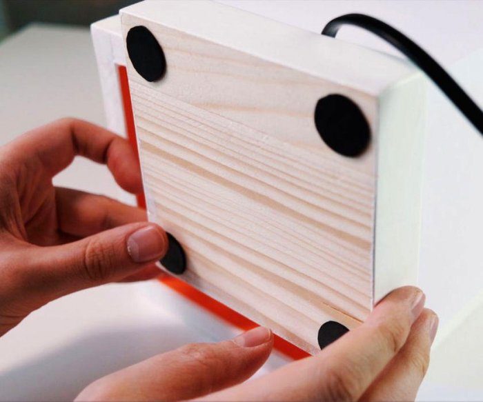 Готовый ночник смотрится очень здорово! Так как снизу нет перегородки, то свет светит вниз, в результате чего создается эффект того, что квадратный короб парит в воздухе.