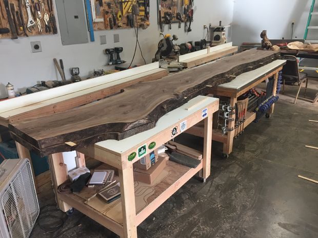 — Столешница с не обрезными краями с двух сторон, состоящая из двух отдельных ореховых досок.