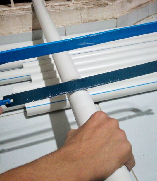 Теперь при помощи ножовки или циркулярной пилы делаем отрезки трубы длиною 65 см. И дополнительно 4 отрезка по 15 см для подголовника. Края труб нужно зачистить наждачной бумагой. Длину основных труб можно сделать больше или меньше по вашему усмотрению. Из-за ограниченного пространства для гамака я использовал 35 труб. Но вы можете сделать его длиннее, добавив дополнительные элементы.