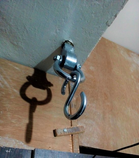 После завязывания, наденьте петлю на крюк. И теперь повесьте оба конца на анкерные болты.