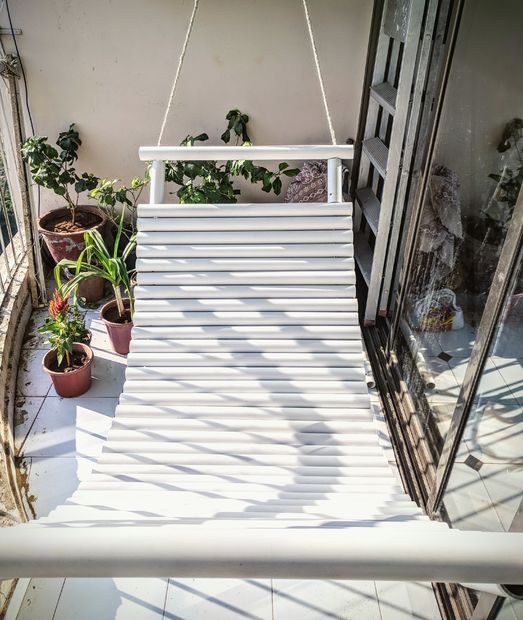 Гамак из пластиковых труб не похож на обычный. Когда в нем лежишь, испытываешь совершенно другие ощущения. При этом гамак принимает изгиб вашего тела, а трубы создают эффект массажа и воздействия на активные точки кожи. Эти ощущения легче прочувствовать на себе, чем передать словами. Над