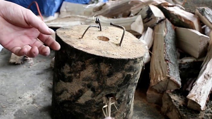 Вместо гвоздей, на природе, можно использовать 3 небольших камня, или два тонких ствола, положенные параллельно друг другу.