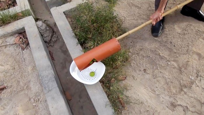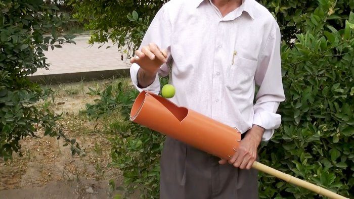Приспособление для сборки фруктов с высоты из ПВХ трубы