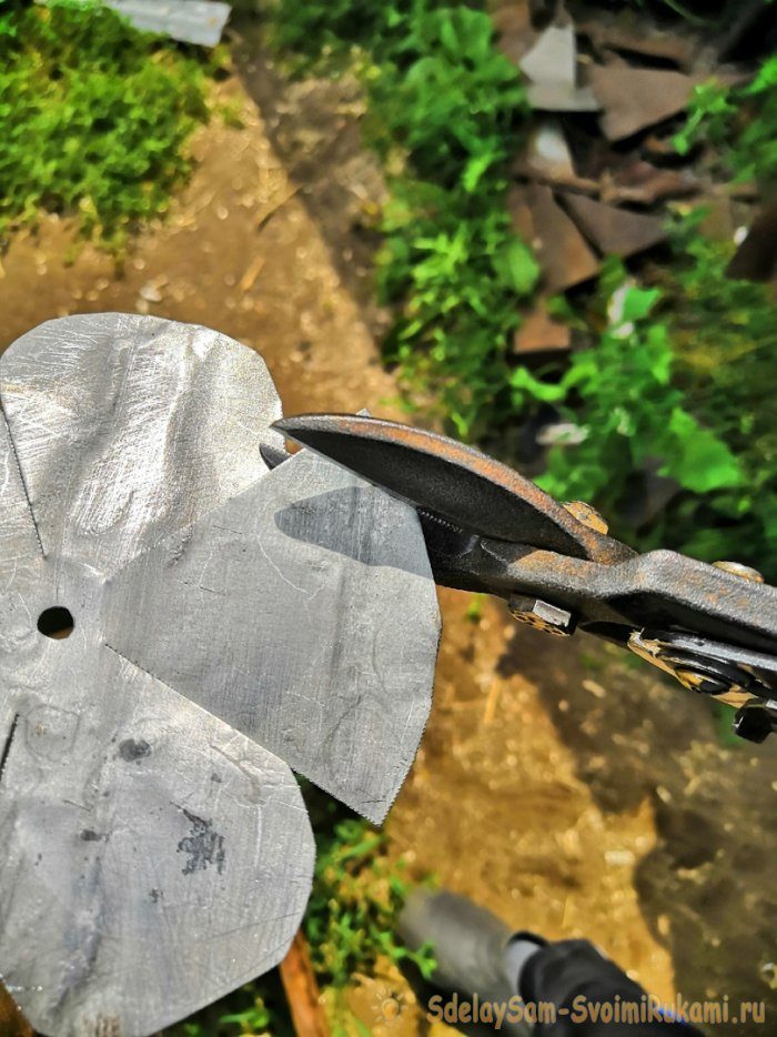 2. Вырезаем окружности по контуру ножницами по металлу и при желании обрабатывает острые кромки шлифовальной шкуркой.