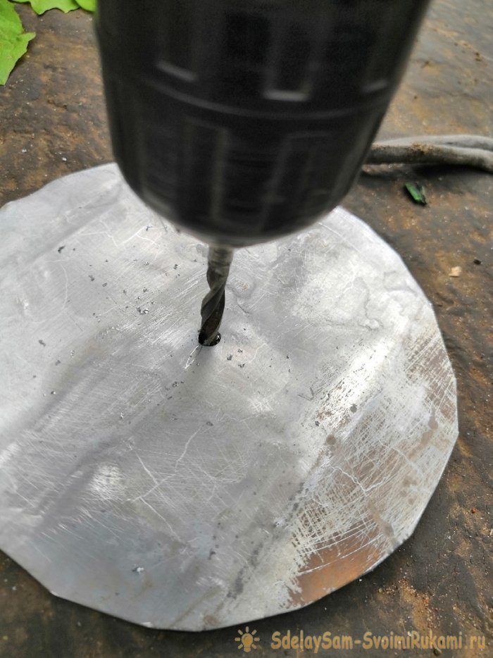 7. Вернёмся к нашим кругам и на месте наметок кернером при помощи дрели сверлим отверстия диаметром 6мм.