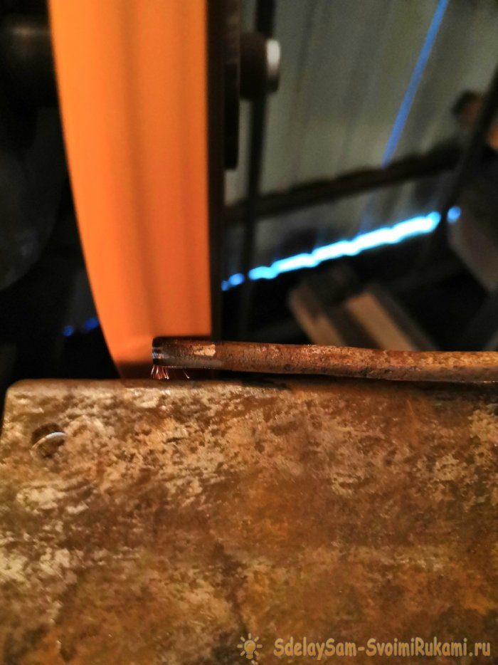 5. На одном из концов проволоки снимаем небольшой поверхностный слой по длине 15мм для на резания на этом месте будущей резьбы. Чтобы плашкой было удобнее работать необходимо скосить края.