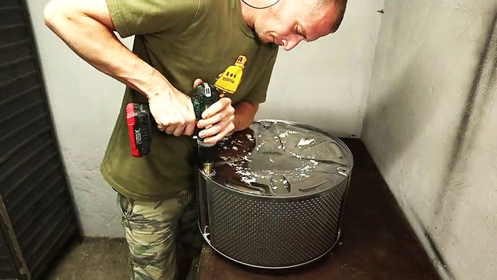 В неработающей автоматической стиральной машинке — барабан из нержавеющей стали обычно хорошо сохраняется. Его можно с успехом использовать, например, для изготовления чудесного функционального гриля.