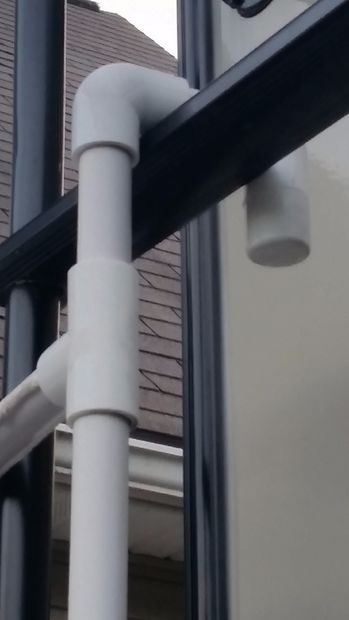 Отрежьте один короткий кусок трубы по ширине ступеньки, с обеих сторон которого будут располагаться отводы (учитывайте, что трубы ПВХ входят в соединения примерно на 2 см).