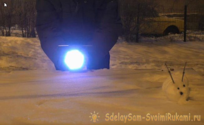 Самое лучшее время для работы этого фонарика конечно зима. Когда на улице ноль или минус руки ещё не сильно мёрзнут, и пользоваться таким фонариком вполне реально. Для лучшего эффекта руки можно периодически менять.