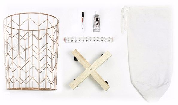 Нанесите на хлопковый мешок с помощью маркера узоры. Чтобы сохранить пропорции и симметричность можете помогать себе линейкой. Разрисуйте весь мешок геометрическими рисунками, а затем разместите его в металлической корзине.
