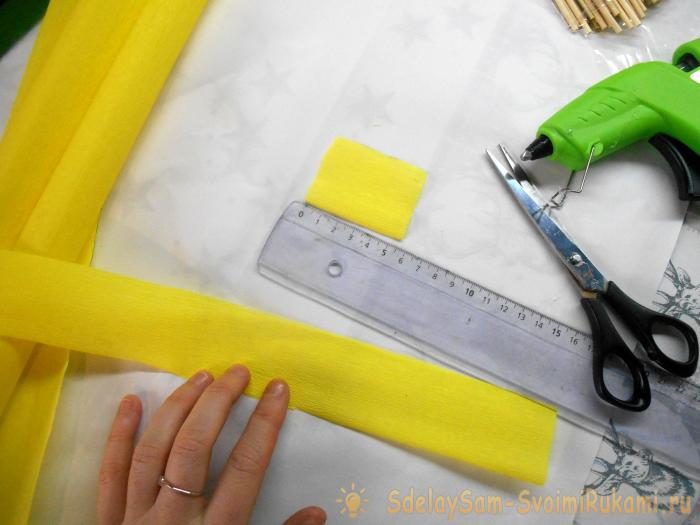 1. Разложите на столе лист желтой бумаги и отмерьте по всей длине полосу шириной 4 см.