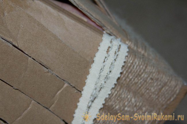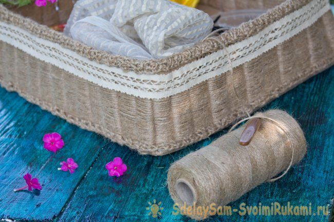 Даже из самых простейших вещей, на которые мы не обращаем внимание, считаем мусором, можно сделать что-то стоящее, непохожее ни на что другое. Если, например, соединить обыкновенную картонную коробку, которая уже собиралась в путешествие в мусорный бак, с джутовой веревкой и старым кружевом, то вполне может выйти симпатичный короб для рукоделия.