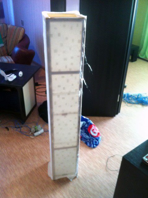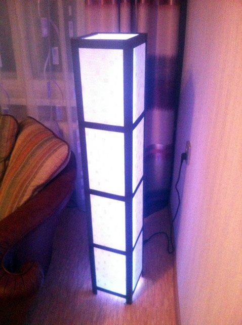 Высота светильника 1,5 метра. Ленту я взял 3 метра, то есть она идет по одному уголку и по диагонали по-другому. Если вы хотите больше яркости – берите ленты, чтобы на все 4 угла хватило.