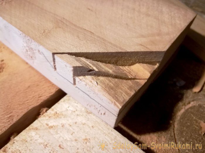 5) Для того чтобы шкатулка могла закрываться, в ее крышке сделаем выступ. При помощи ножовки